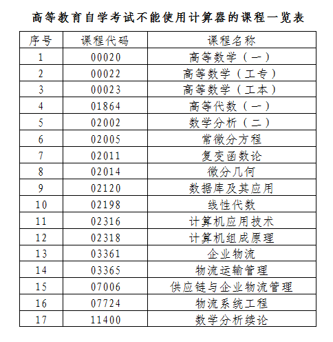 ②其余有計算要求的課程,允許考生使用簡單的、沒有程序存儲功能的計算器。