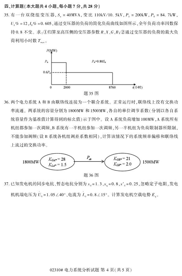 2019年10月自考02310電力系統(tǒng)分析試題