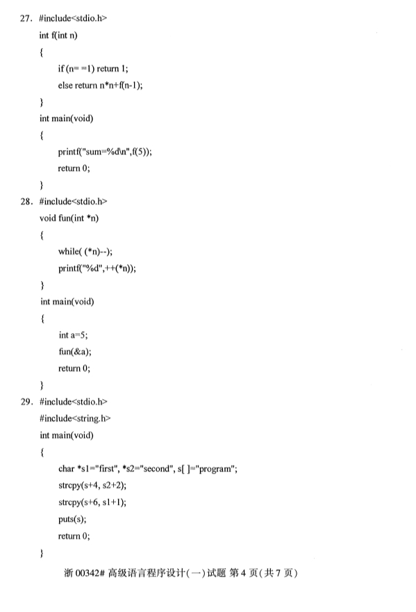 所在位置:廣東省自考網(wǎng) > 試題題庫(kù) > 自考試卷 > 全國(guó)2019年10月自考00342高級(jí)語(yǔ)言程序設(shè)計(jì)(一)試題